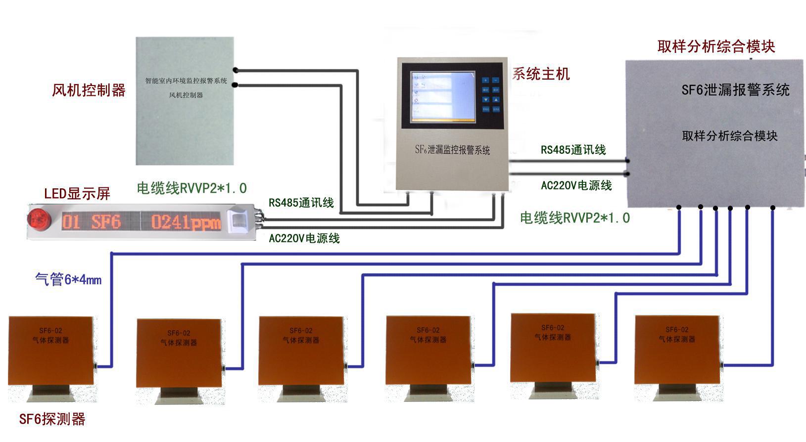 HS6000B型气体泄漏定量报警系统主要应用在变电站内35KV SF6开关室及500KV、220KV、110KV GIS室,对SF6组合电器设备室环境中SF6气体泄漏情况和空气中含氧量进行实时监测。主要由气体取样分析模块、风机控制器、监测主机及辅助功能模块组成。系统结构上更加小巧,安装更加简单。适合面积较小的场合,节省投入成本。